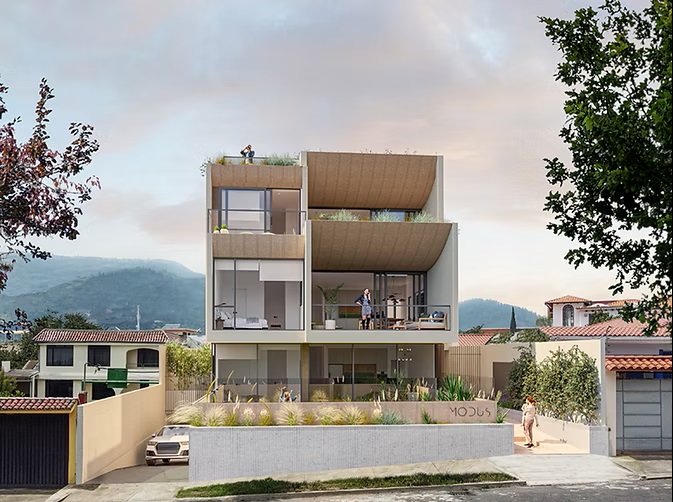 El Edificio MODUS con Departamentos de venta de 2 dormitorios -innovadores y funcionales- que amarás habitar! en el sector La Primavera en Cumbayá.